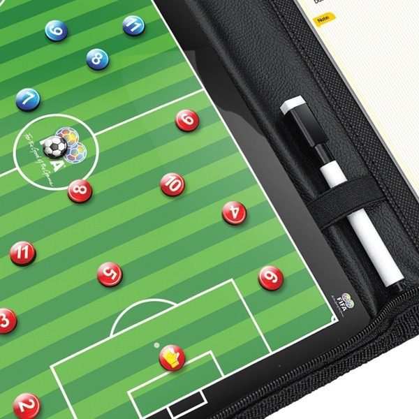 یک سمت، تخته پلکسی با مگنتهای رنگی و ماژیک مخصوص برای تحلیل و طراحی تاکتیکها؛